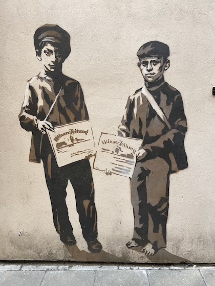 Der Abschluss meines Rundgangs brachte mich durch die Literatengasse, an deren Wände Schriftsteller mit kleinen Kunstwerken geehrt wurden – die meisten kannte ich nicht, aber ich entdeckte Günter Grass anhand seines Portraits. Nach einem Abstecher in das Künstlerviertel Užupio machte ich mich mit vielen Reisegruppen langsam zurück auf den Weg zum Bahnhof, um meine Rückfahrt anzutreten. Die kleinen Gassen, durch die ich ging, trafen immer mal wieder auf kleine Plätze, an denen eine Kirche stand, manchmal sogar zwei direkt nebeneinander. In der Tat hatte ich das Gefühl, fast immer mehrere Kirchtürme sehen zu können und fühlte mich in dieser Hinsicht fast schon wie in Venedig.