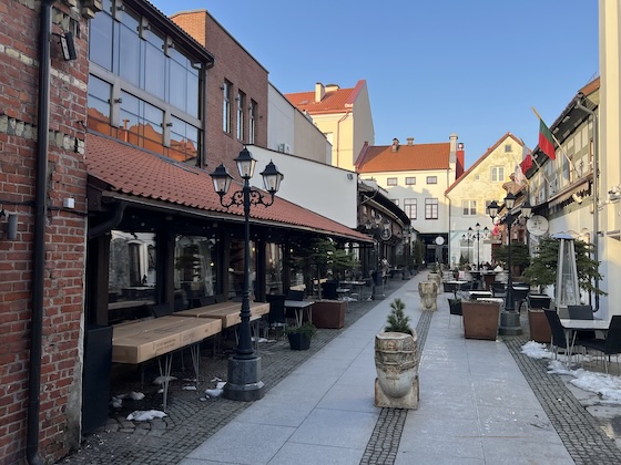Anschließend ging ich noch etwas essen, dieses Mal mit Hilfe eines Chatbots: Ich habe auch nach Erfahrungsberichten von Freunden festgestellt, dass sie für die Reiseplanung eigentlich ganz gut geeignet sind, denn in dem Bereich funktionieren sie meiner Meinung nach eigentlich so wie Google vor 20 Jahren: Die Antworten, die man bekommt, passen zu dem, was man sucht, und sie ersparen einem aufwändigeres Recherchieren. Ich hatte nach einem Restaurant in der Altstadt gefragt, in dem man litauische Spezialitäten bekommen kann – und zwar etwas außer Cepelinai, denn die hatte ich ja bereits probiert. Mir wurde eins empfohlen mit dem Vorschlag, dort „Žemaičių blynai“ zu essen, nämlich typisch litauische gefüllte Kartoffelpfannkuchen. Dort eingetroffen stellte ich allerdings beim Lesen der Speisekarte fest, dass das Restaurant sie nur zwischen 12 Uhr mittags und 6 Uhr abends anbietet. Mangels einer Auswahl an bezahlbaren Alternativen bestellte ich mir dann ein Wiener Schnitzel.