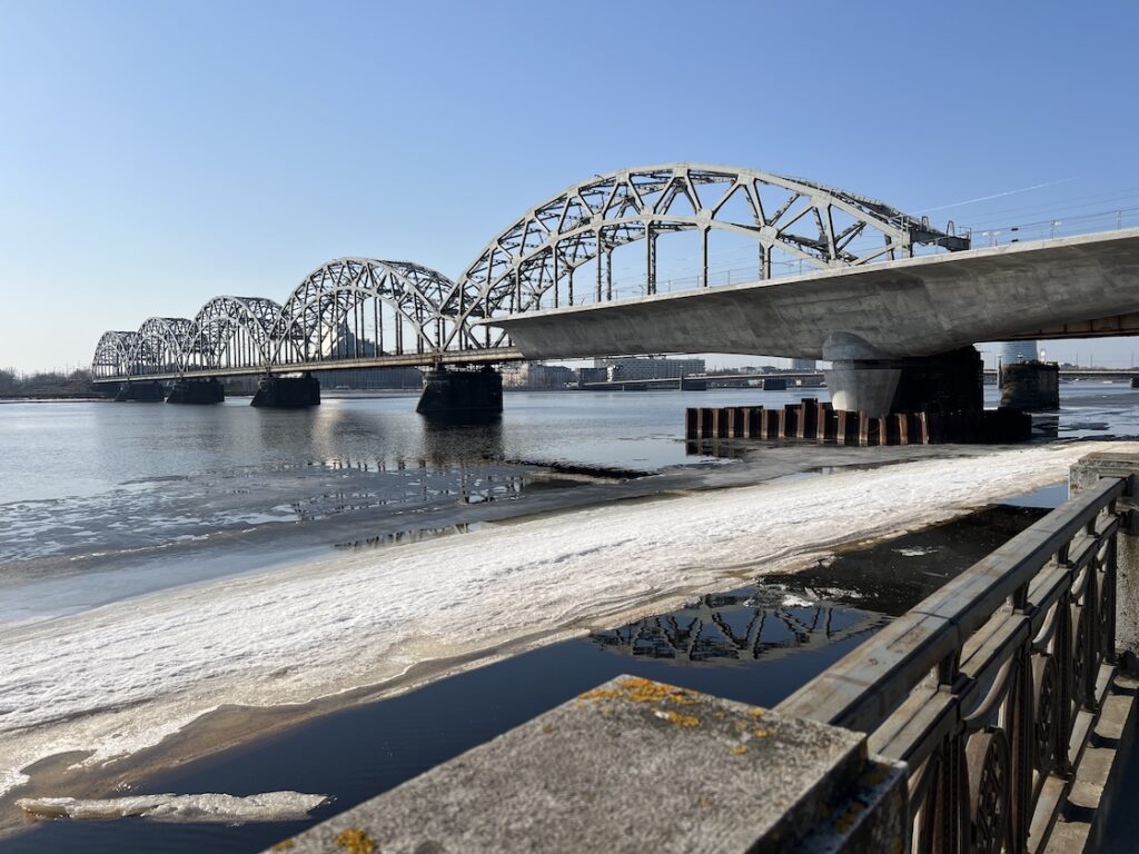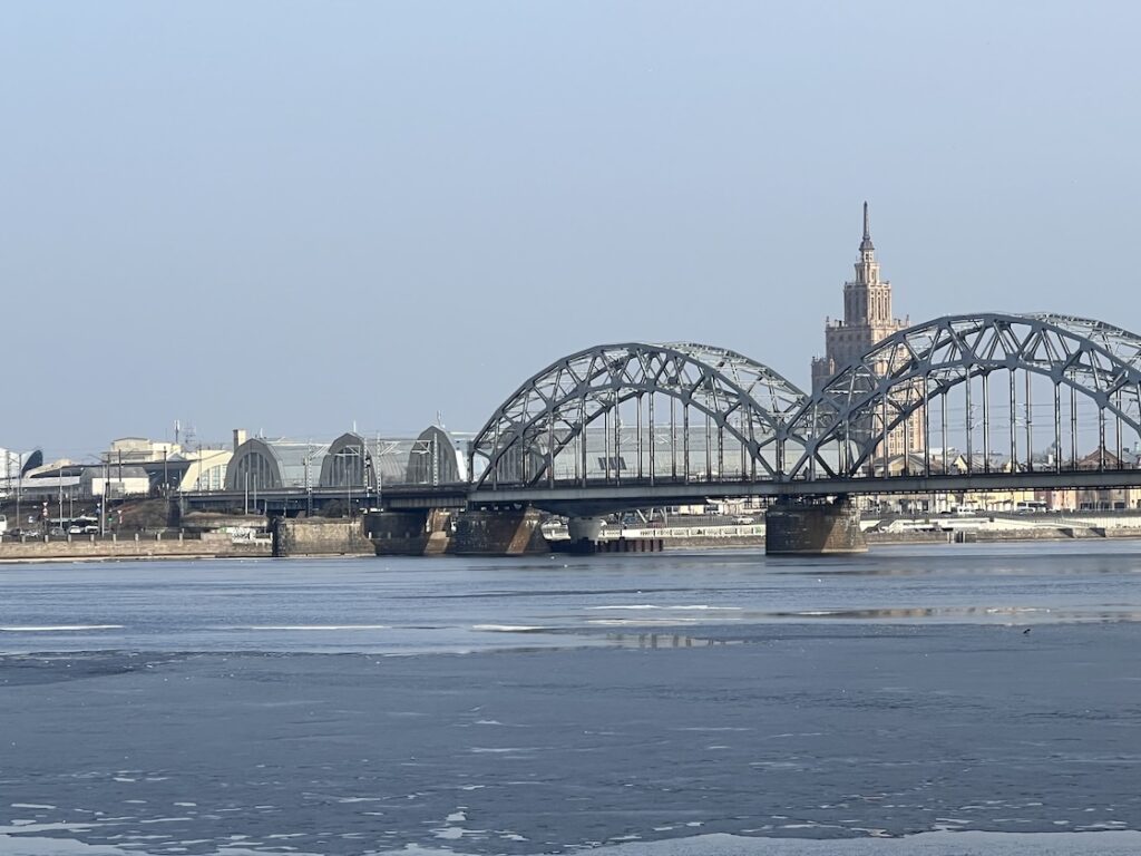 Weiter in Richtung Altstadt passierte ich wieder den Bahnhof und sah, dass sich südlich des Haupttrakts ein neues Gebäude im Bau befand, laut Schild das der „Rail Baltic“, die mit europäischer Spurbreite irgendwann mal eine schnelle Verbindung bis nach Warschau bereitstellen soll. Die Gleise endeten aber nicht weit entfernt direkt über dem Fluss Düna im Nirgendwo. Es wird also noch einige Jahre bis zur Fertigstellung dauern.