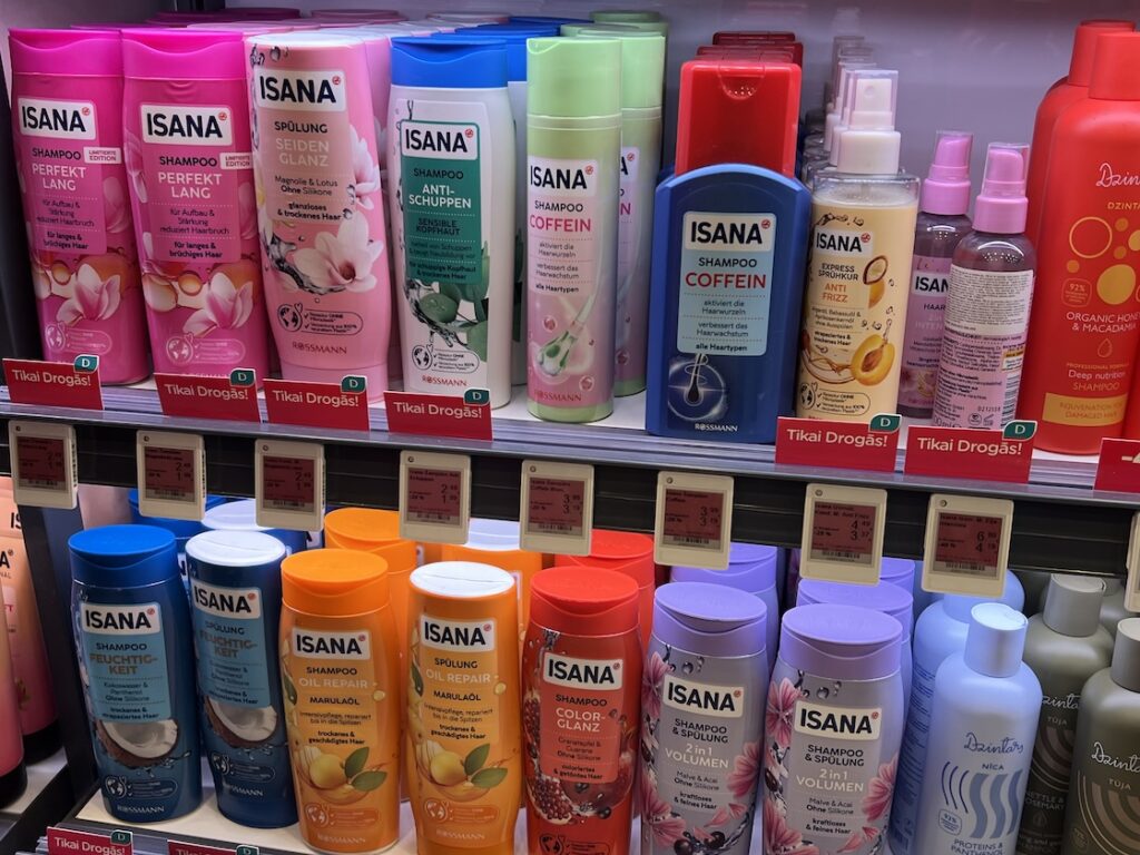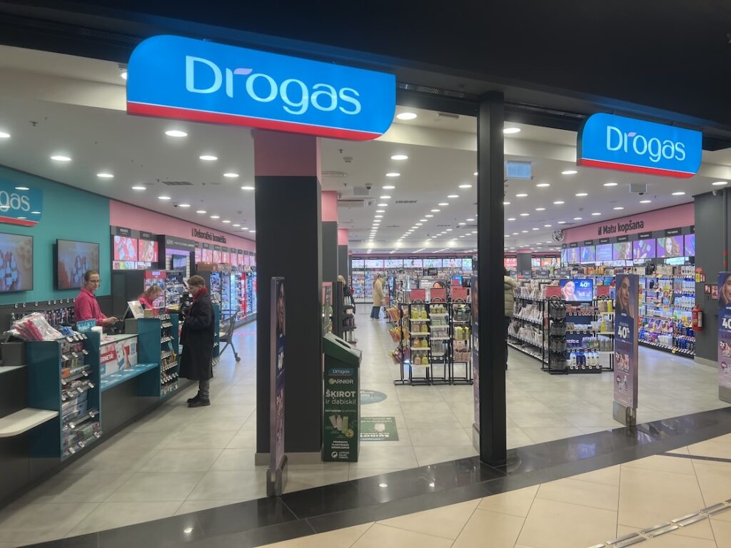 Ich hatte vor meiner Abfahrt kurz vor 12:00 Uhr noch ein wenig Zeit und beschloss, im angrenzenden Einkaufszentrum eine Drogerie aufzusuchen, denn ich hatte mir am gestrigen Tag an beiden Füßen ordentliche Blasen gelaufen, warum auch immer, schließlich war ich auch schon vorher jeden Tag längere Strecken zu Fuß unterwegs. In einer lokalen Drogeriekette „Drogas“ machte ich eine interessante Entdeckung: Das dortige Produktsortiment beinhaltete auch die Rossmann-Hausmarke „Isana“. So kaufte ich mir eine Packung Blasenpflaster „Fußwohl“. Ich recherchierte später während der Zugfahrt und fand heraus, dass Rossmann keine Anteile an der Kette besitzt, sondern dass sie im Besitz eines Investors aus Hongkong ist.