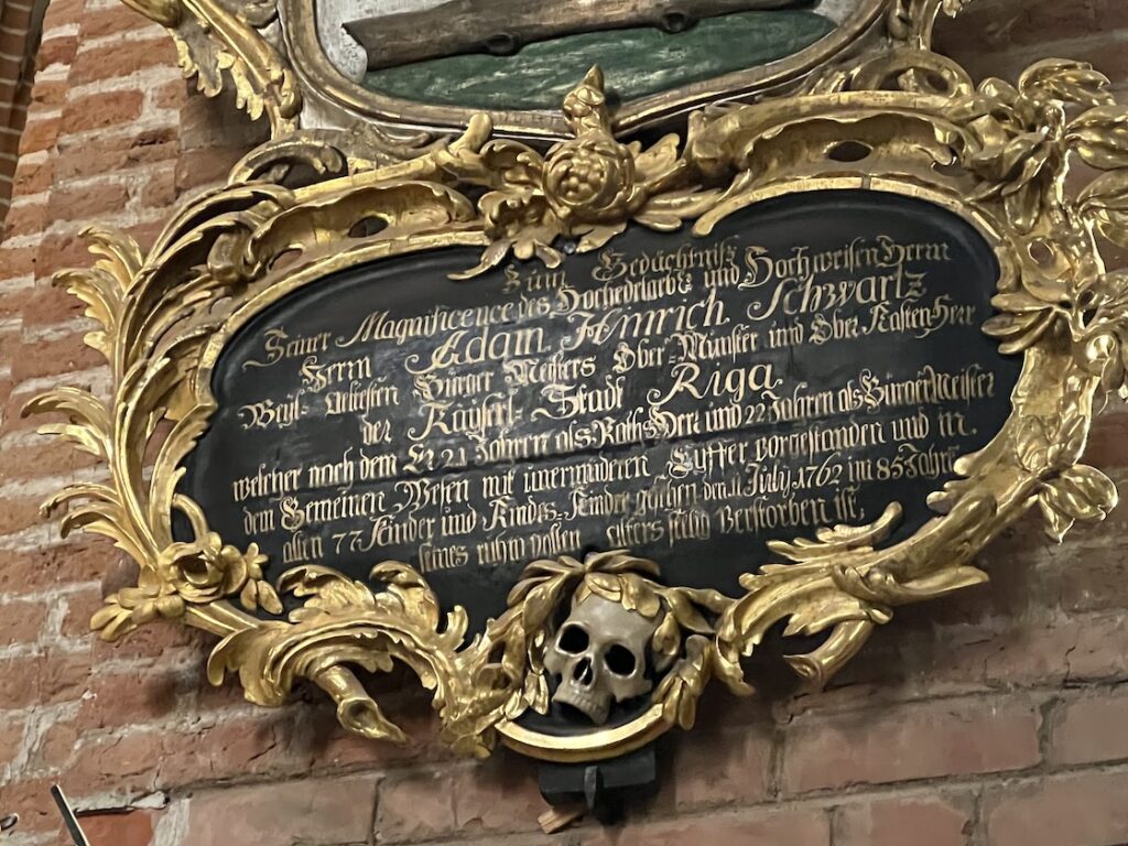 Auf der Westseite der Düna flanierte ich nordwärts am Fluss entlang in Richtung Altstadt und hatte mehrere Male das unmittelbare Gefühl, in Hamburg zu sein, denn es gab viele Ähnlichkeiten: Die Eisenbahnbrücke über die Düna sah aus wie die alten Elbbrücken, der Turm der Petrikirche in der Altstadt ähnelte sehr dem der Hamburger Katharinenkirche und die Hallen des Zentralmarkts wirkten aus der Ferne so wie der Hamburger Großmarkt. In der Altstadt, die ich schon am Tag zuvor besucht hatte, wollte ich nun auch einige Sehenswürdigkeiten von innen anschauen, auch wenn noch immer die Sonne schien. Das Innere des Doms und der Petrikirche sahen für mich aus wie typische Gotteshäuser, aber mir fielen die alten Tafeln an den Säulen auf, auf denen in verschnörkelter goldener Schrift deutsche Texte zu lesen waren. Ich hatte in der Zwischenzeit mitbekommen, dass der „Deutsche Orden“ im späten Mittelalter nicht nur in Ostpreußen die Gegend geprägt hat: Die Stadt Riga wurde maßgeblich von einem Bremer Bischof gegründet.