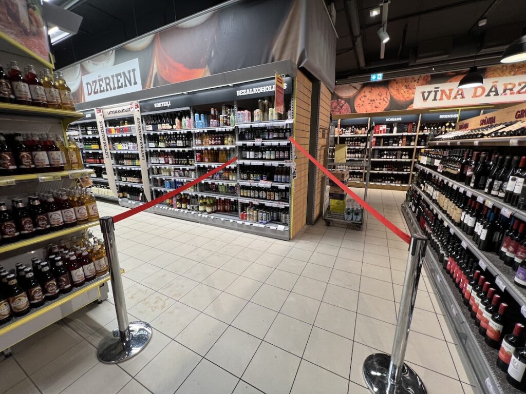 Anschließend wurde es langsam dunkel. Durch mein frühes Aufbrechen und der Tatsache, dass ich an beiden Tagen zuvor abends essen war, versorgte ich mich im Supermarkt und beschloss, den langen Tag gemütlich enden zu lassen. Bei der Gelegenheit wollte ich nach alter Tradition lokales Bier als Souvenir kaufen, aber es war bereits nach 20:00 Uhr und in Lettland ist dann der Verkauf alkoholischer Getränke verboten – die Regale waren abgesperrt.