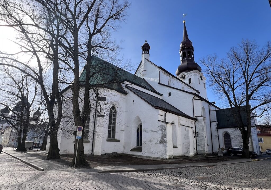 Nach Lektüre meines Reiseführers beschloss ich, meinen Rundgang entlang der Pikk-Straße fortzusetzen. Auf meinem Weg entdeckte ich wieder alte Schilder an den Mauern in deutscher Sprache und dem Namen „Reval“ statt Tallinn. Direkt gegenüber des ältesten Cafés der Stadt sah ich eine Polizeistreife und einen per Barrikaden abgesperrten Teil des Bürgersteigs. Anhand der Flagge über dem Eingang erkannte ich, dass es sich um die Botschaft Russlands handelte und auf den vielen an den Barrikaden angebrachten Plakaten davor war die Botschaft Estlands bzw. ihrer Einwohner an die Politik zu lesen, die Ukraine zu unterstützen.