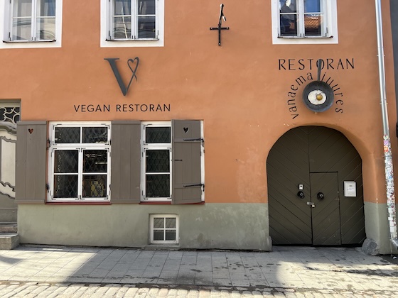 Restaurant in der Altstadt, das offensichtlich vegane Eier brät