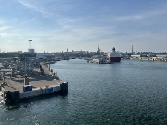 Mit meinem Gepäck machte ich mich anschließend auf den Weg durch die Altstadt zum Fährterminal und ging kurze Zeit später an Bord der Fähre namens „MegaStar“ mit Ziel Helsinki. Ich fragte mich, wann ich zuletzt auf einem so großen Schiff war, und mir fiel ein Tagesausflug von Tarifa nach Tanger im Jahr 2011 ein – es war also schon ganz schön lange her. Ich hätte einfach als blinder Passagier mitfahren können, denn ich musste nicht meine Bordkarte vorzeigen, so wie auch die anderen Fahrgäste nicht. Obwohl wir laut Plan um 13:30 Uhr hätten ablegen sollen, setzte sich die Fähre bereits eine Viertelstunde vorher in Bewegung, also nur ein paar Minuten nach Ende des Boardingzeitraums.